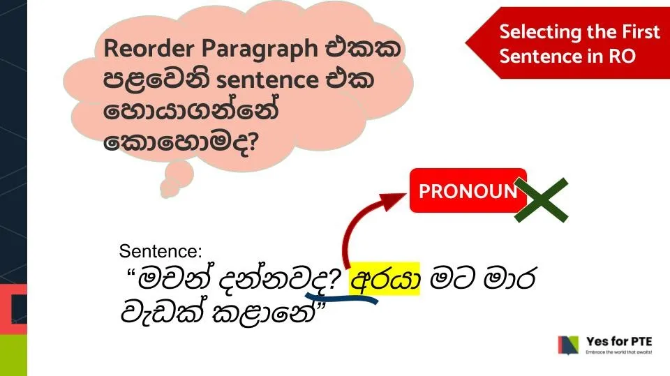 Reorder Paragraph එකක පළවෙනි sentence එක හොයාගන්නේ කොහොමද? අද Yes for PTE blog එකෙන් අපි…